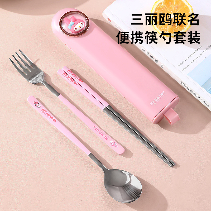サンリオ 箸とスプーンセット 学生用ステンレス食器セット 一人用 携帯用カトラリーボックス 3点セット