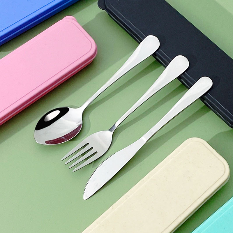 304ステンレスナイフフォークスプーン箸学生旅行ピクニック韓国式absカバー収納ケース携帯食器セット