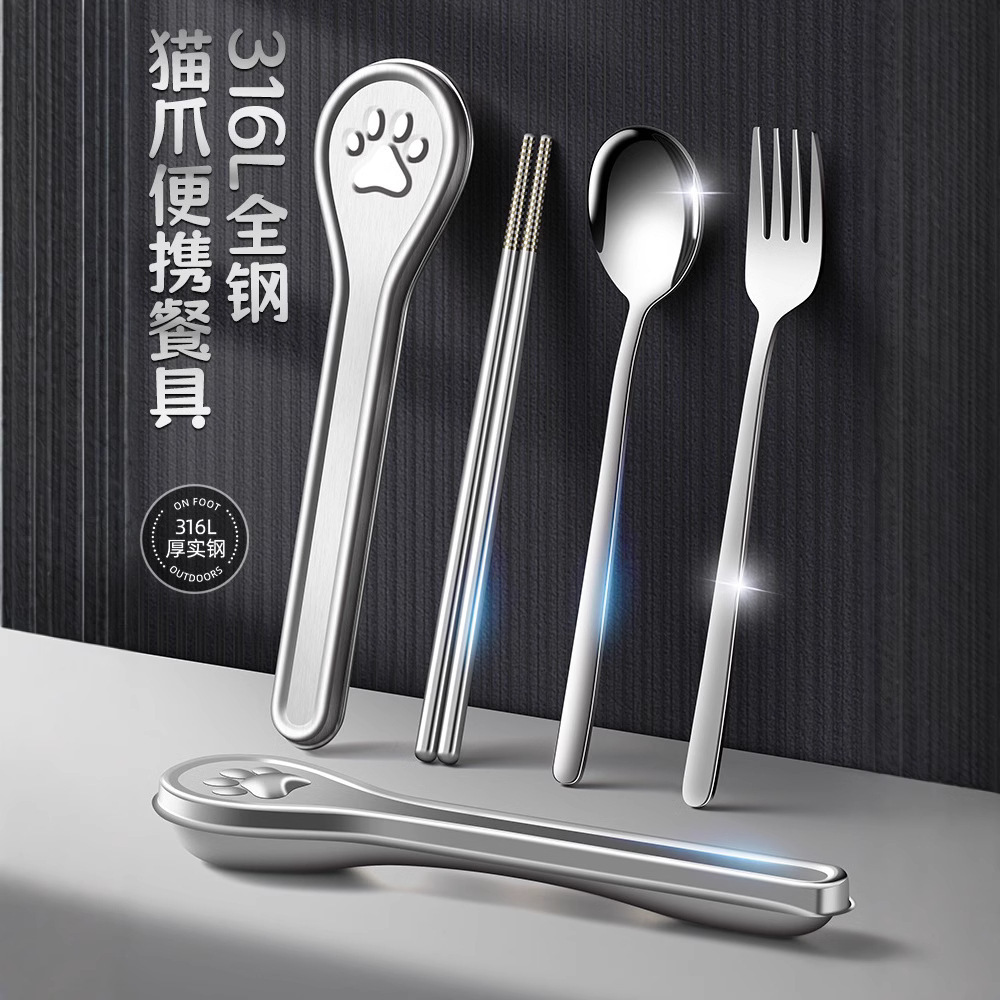 316 ステンレス鋼の箸とスプーンセットポータブル猫の爪カトラリーボックス 1 人用小学生と子供用テイクアウト