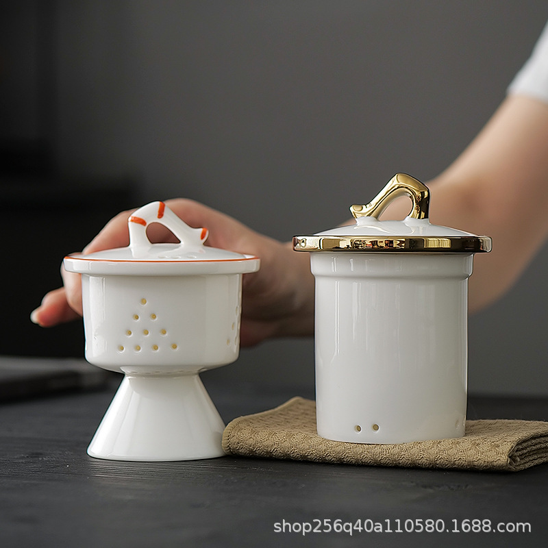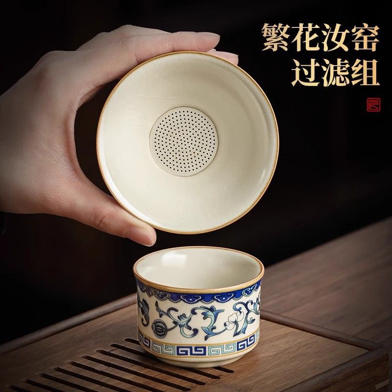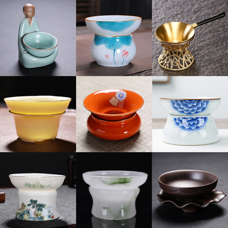 汝窯茶濾過茶漏れセット家庭用高級濾過網泡茶神器陶磁器茶器部品茶隔茶漏れ