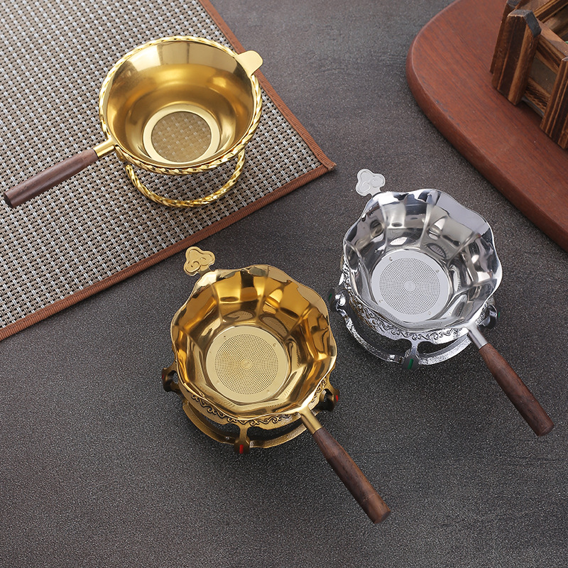 ステンレス茶漏れフィルタネット片耳木柄茶隔泡茶公道杯茶具部品茶かす分離器茶托