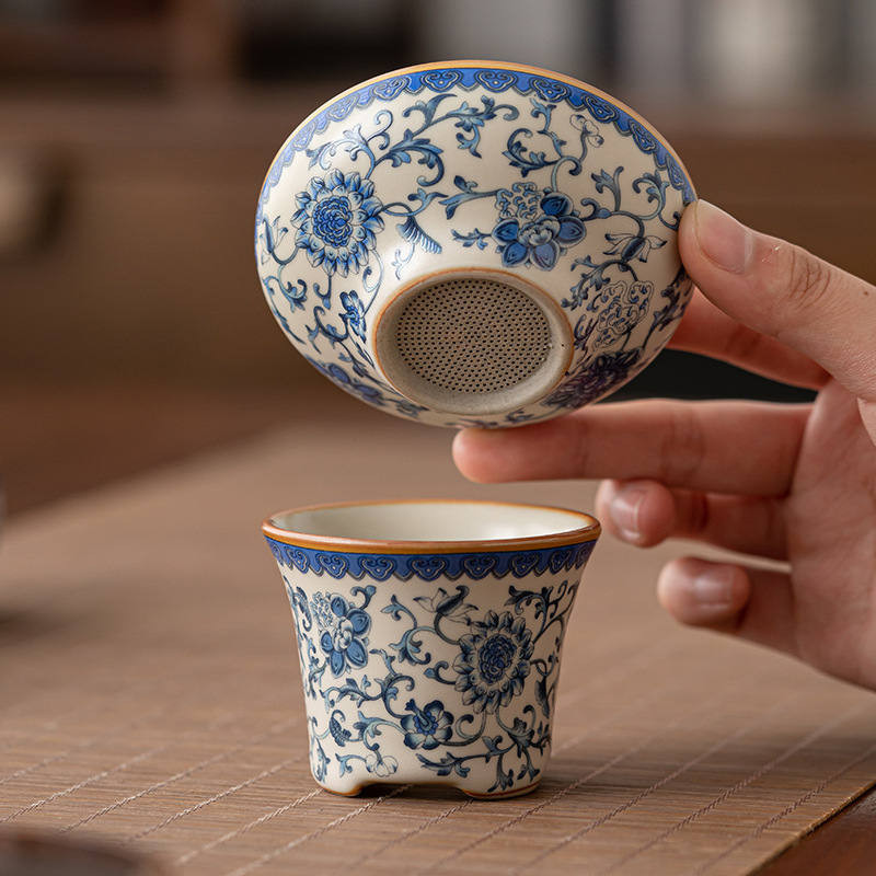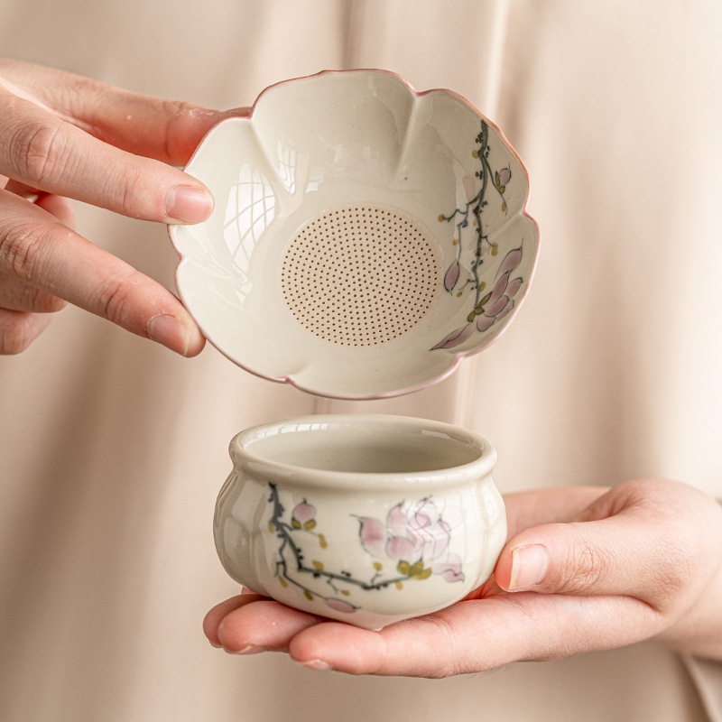 玉蘭手描き陶磁器茶漏れ茶濾過高颜値茶フィルタ家庭用オフィス茶器茶フィルタ