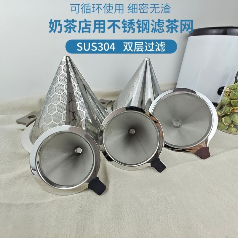 ステンレス鋼ミルクティーバケツ両耳フィルター大型コーヒー茶超微細円錐漏斗ミルクティーショップ