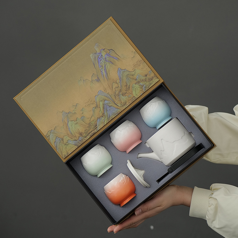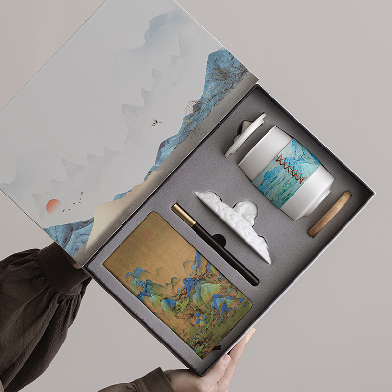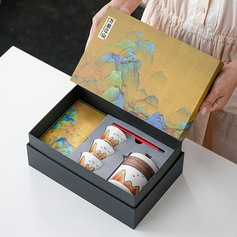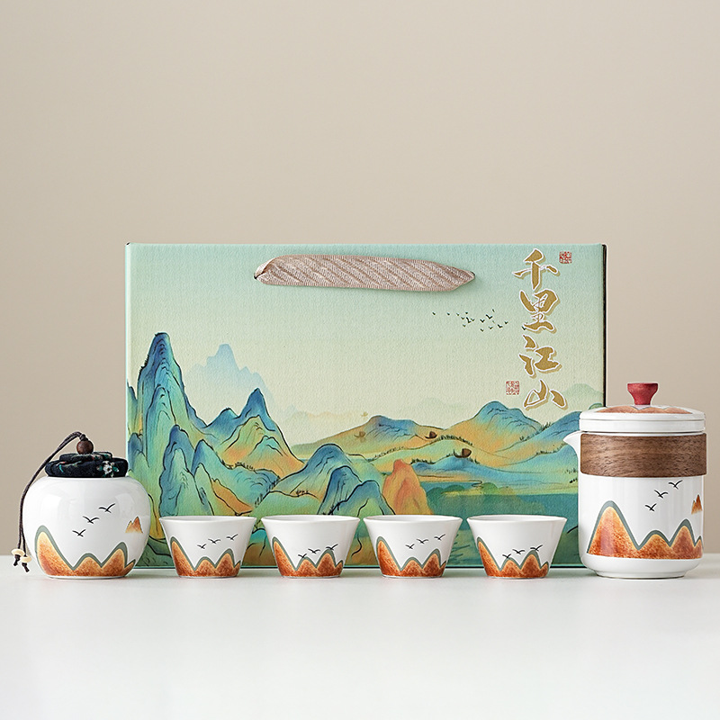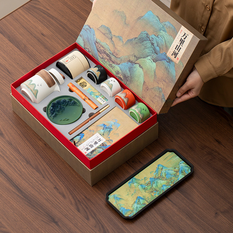 国潮文化創意千里江山功夫茶器一壺四杯ギフトセット一式、企業向けビジネスギフト