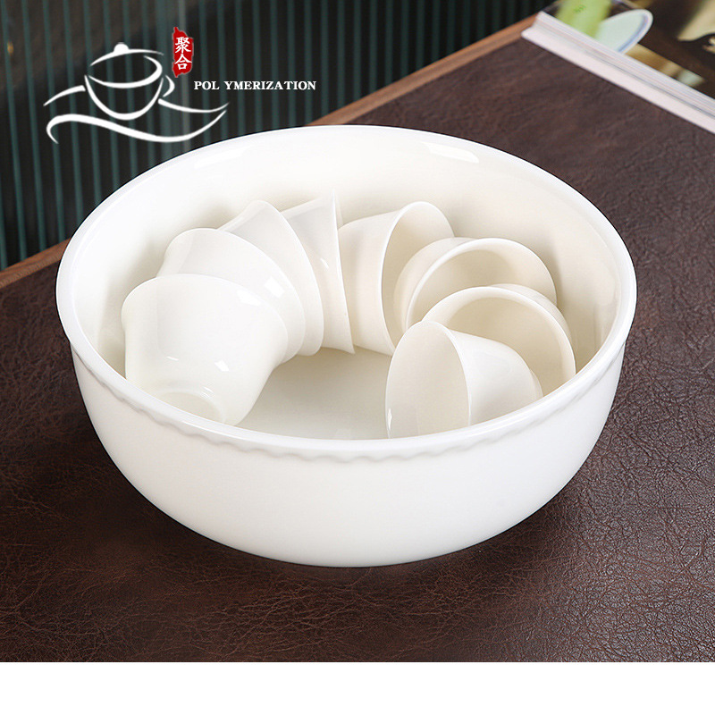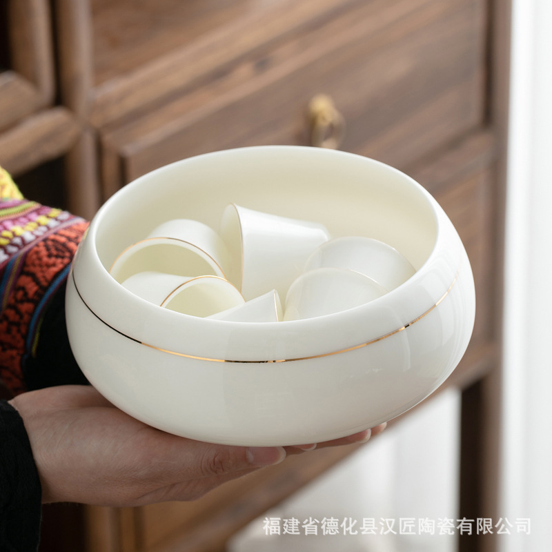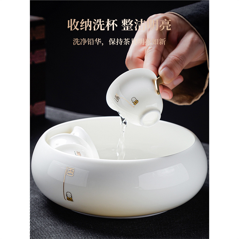 徳化羊脂玉磁器茶洗家庭用工夫カップ洗筆洗茶器部品カップ収納盆筆洗お盆