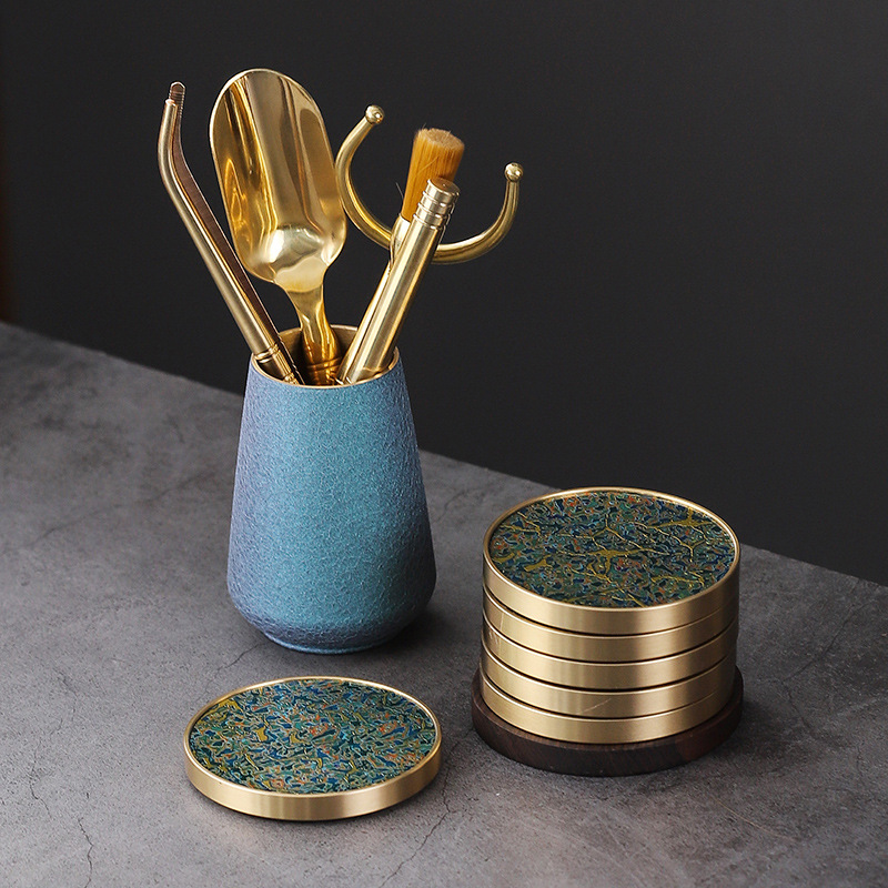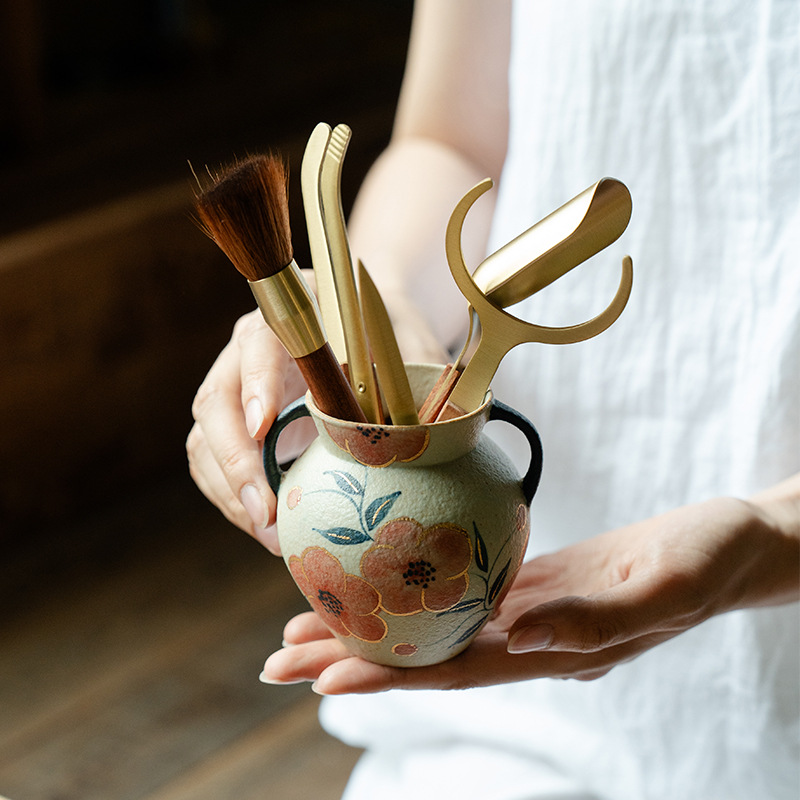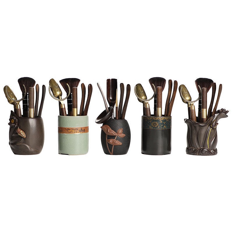 銅色変色茶桶六君子セットカンフー茶具部品大全茶筆茶刀茶クリップセット