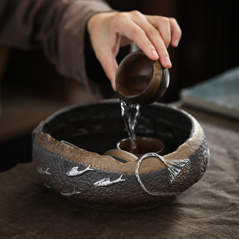 粗陶茶洗金魚劇大サイズ洗茶碗水洗筆洗建水茶かすかめ水盆工夫茶器零配