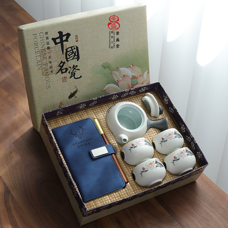 景盛堂雪花釉薬陶磁器工夫茶器礼箱セット創意側は壺ノート会社のビジネスプレゼントを持っています。