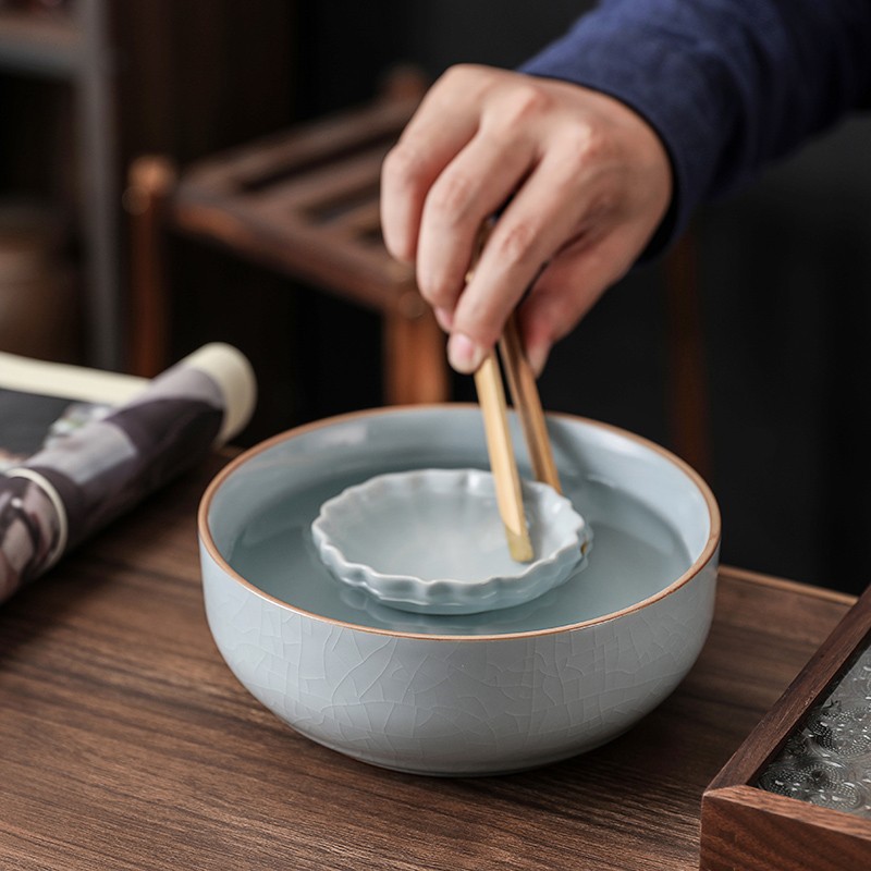 大サイズの汝窯茶洗茶かすかめ陶磁器水洗い茶カップ盆器レトロ茶具部品水盆筆洗建水
