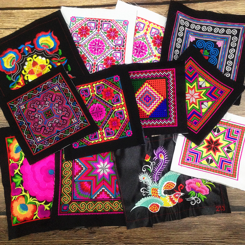 苗刺繍小さな正方形の機械刺繍ピースエスニックスタイルの特徴的なクラフト DIY 刺繍花衣類エッジングコーナーアクセサリー