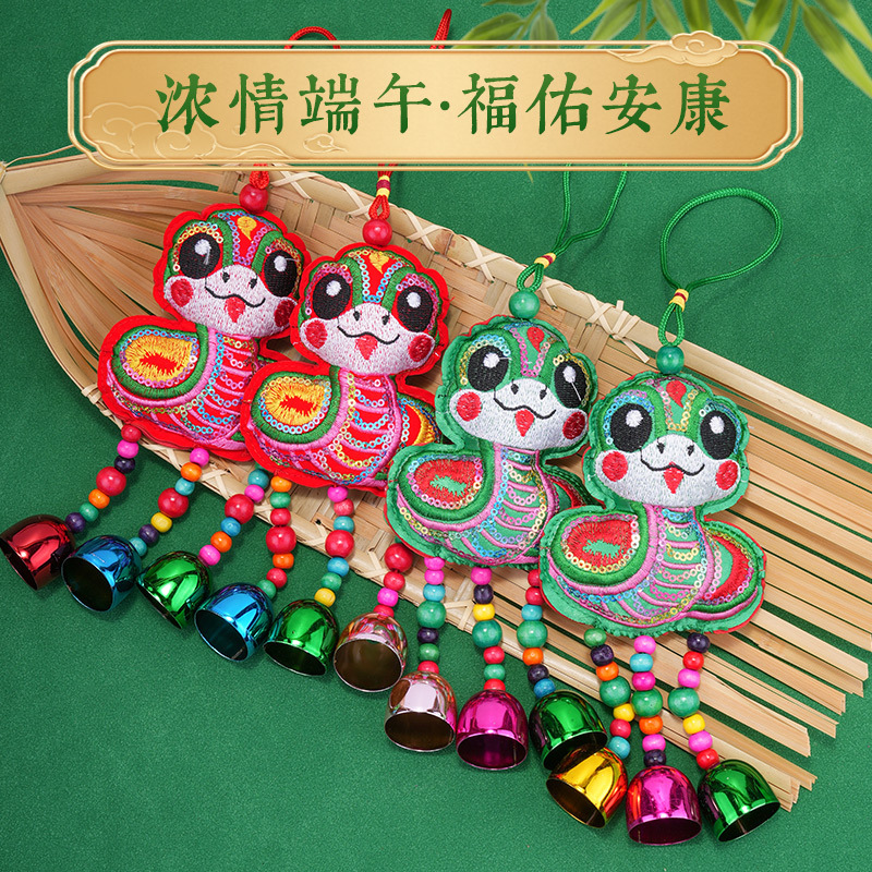 林の熱い販売の金の端午の節句の小さい掛け物の民族の風の刺繍の蛇の赤ちゃんの風鈴は贈り物の端午の節句を飾って飾ります。