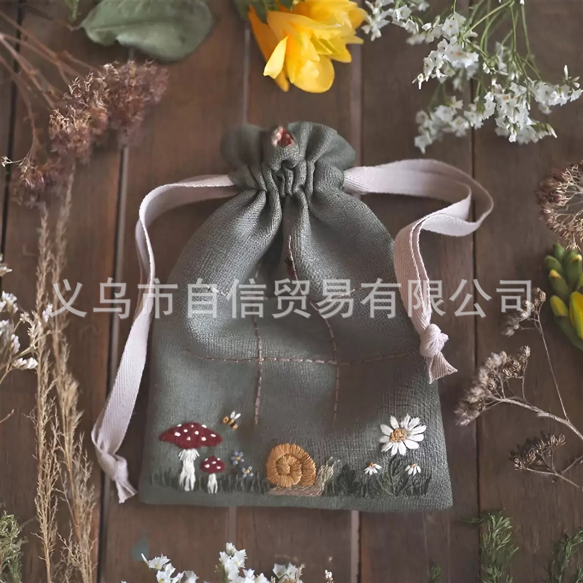クロスボーダー新しい手作りリボン刺繍ジュエリーバッグリネンバッグ巾着袋ジュエリーギフト包装袋