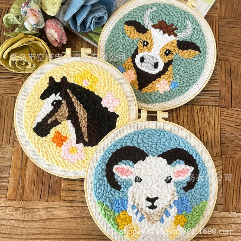 ロシアスタンピング刺繍 diy 手作り材料パッケージ小さなウール糸刺繍スタンピング刺繍かわいい漫画の馬子供の絵