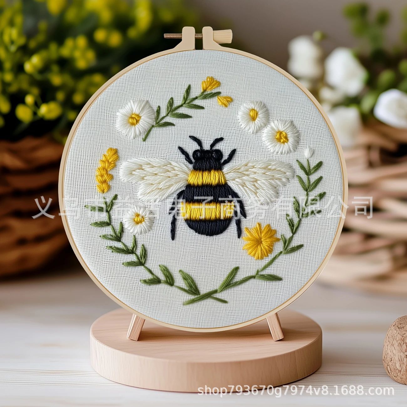 英語刺繍 diy 材料パッケージフランス刺繍蜂花吊り絵画ル刺繍手作りクロスボーダー初心者針仕事ペンダント