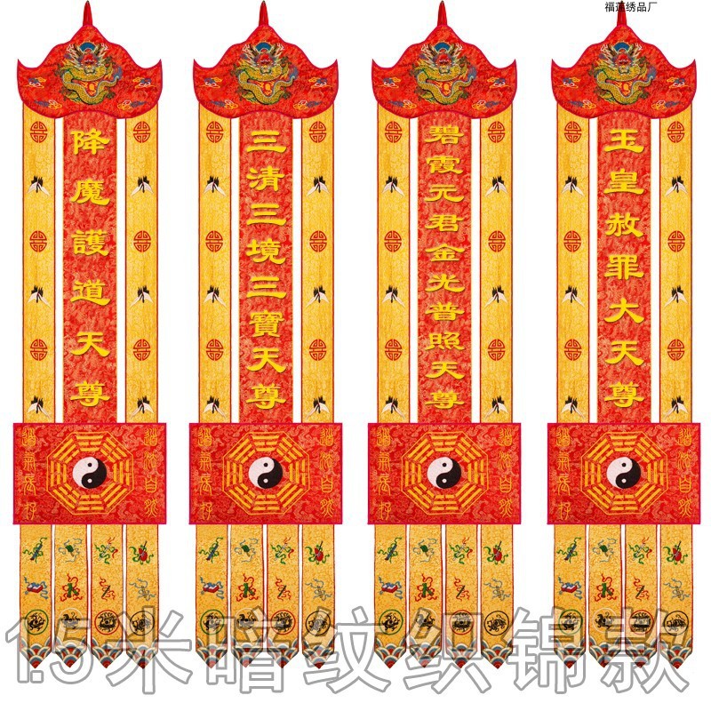 道教の刺繍堂口吊り旗 1.5m 個、太上老碧霞の祝福と崇拝のための長い旗、潮刺繍旗、道教の旗