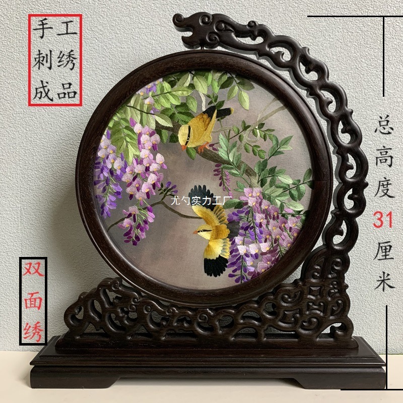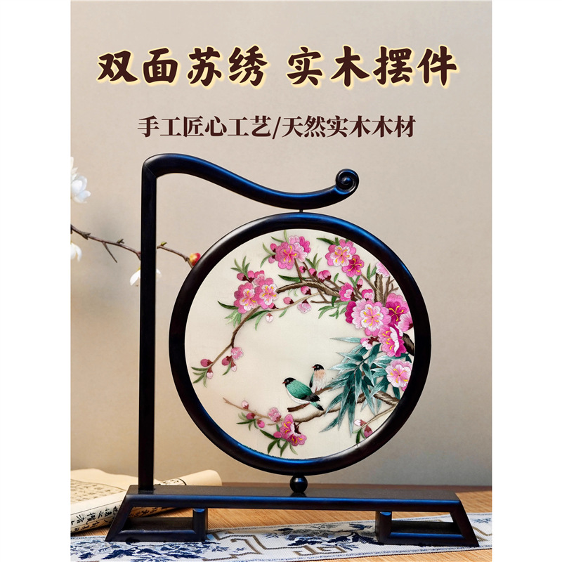 手刺繍装飾品、蘇州刺繍、両面刺繍、卓上装飾、中国風卓上スクリーン、外国人向けビジネスギフト