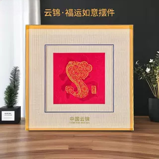雲錦福運如意シンプル金属枠装飾雲錦刺繍置物