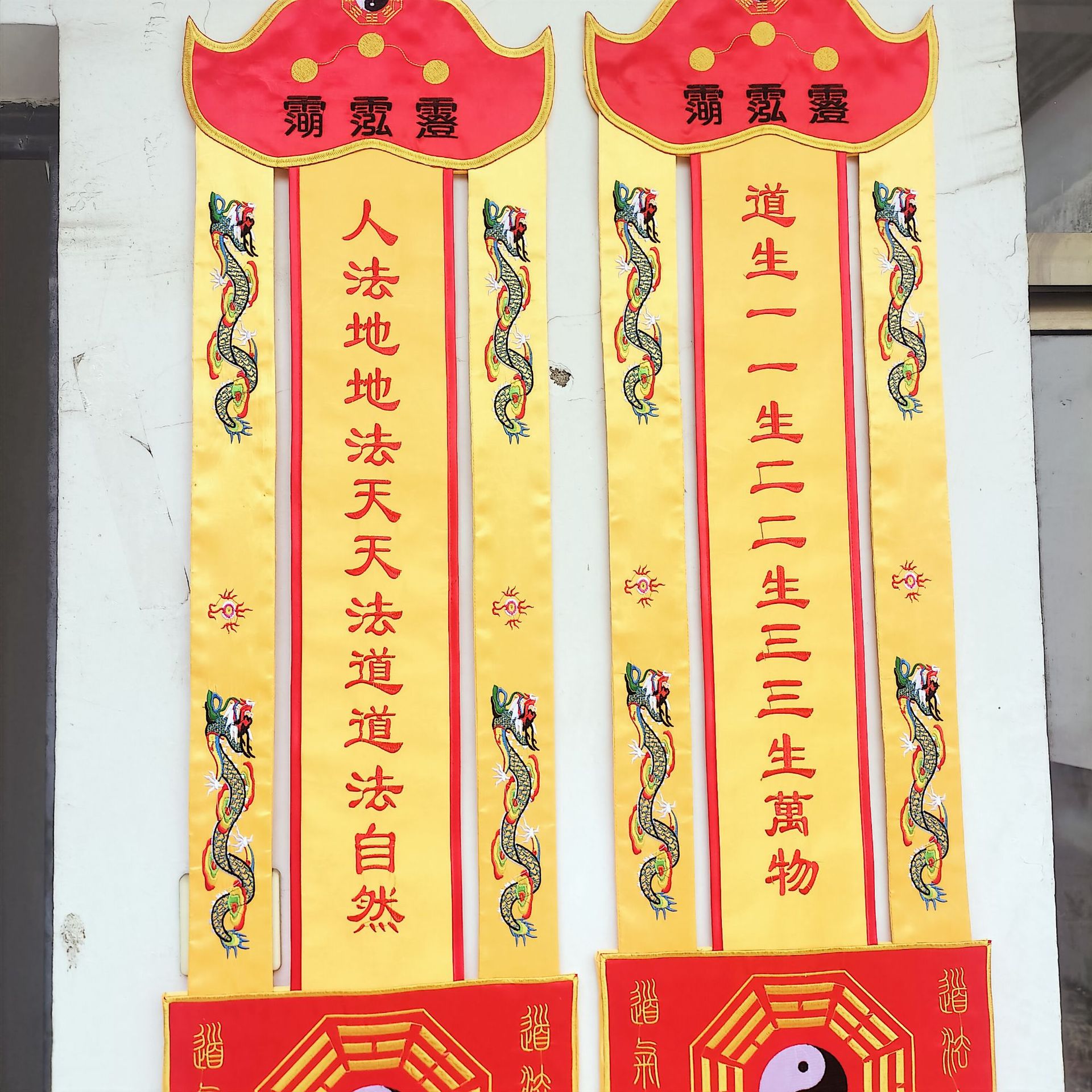 1.5m ゴールデンレース道教旗ロング旗垂直旗吊り旗八卦鶴道教旗レース