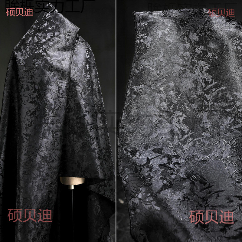 黒のリニア植物ジャカード生地クリエイティブ立体テクスチャ刺繍ジャケットスーツスカート生地