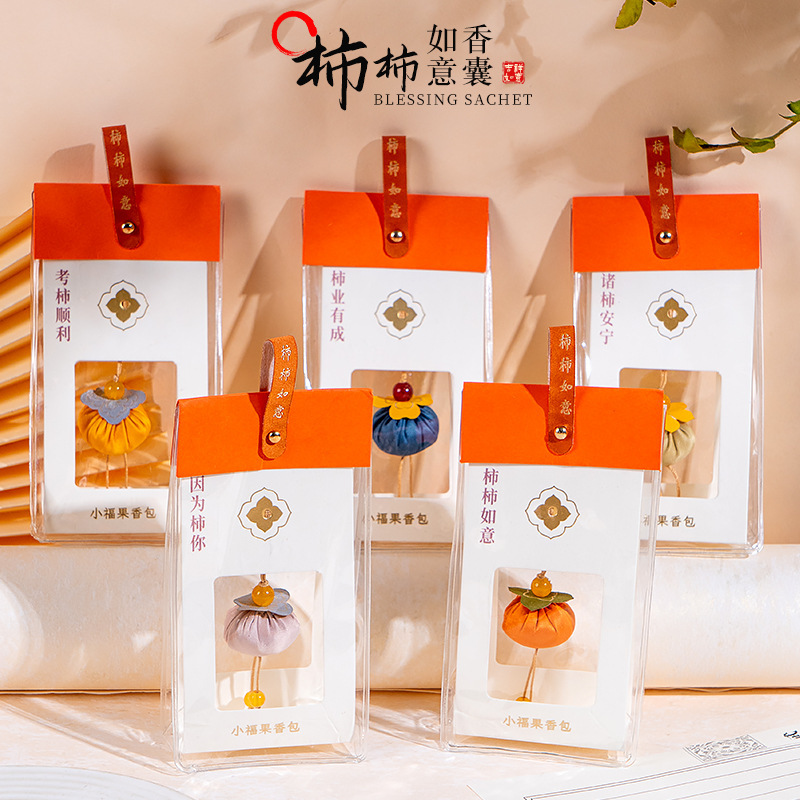 端午の節句の柿の香りの包みの平安記号はすぐに贈り物の刺繍を飾って手作りの漢服の柿の如意の香りの袋の福袋を飾ります。