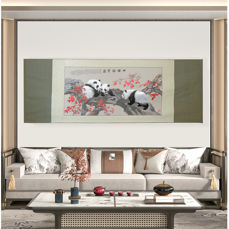 友人へのメープルリーフパンダ現代蜀錦: 75-200cm: 中世スタイルの装飾画玄関吊り絵