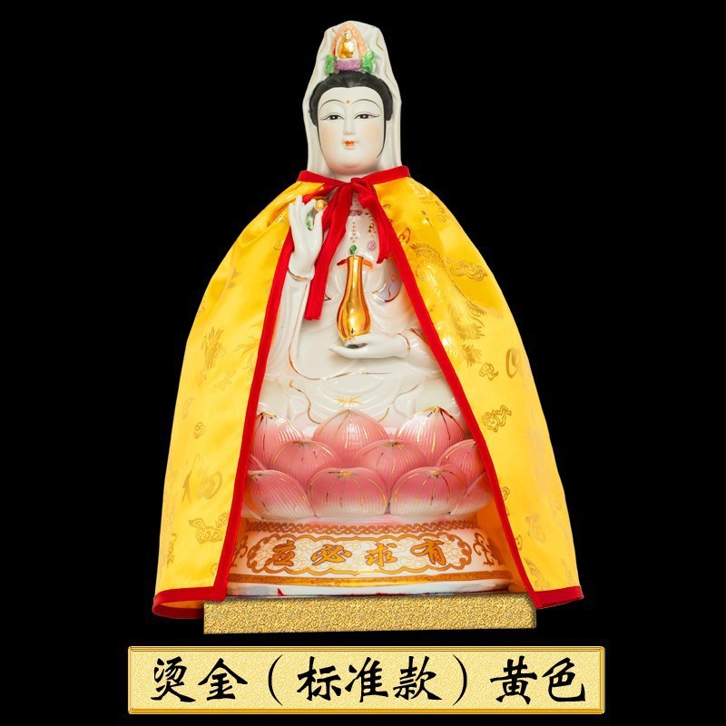 30センチ家庭用の小仏像神像観音関公の土地の女神は風の仏衣のローブの竜鳳福の字をかぶって熱いです。