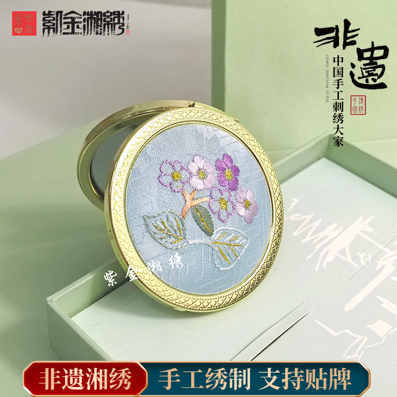 非遺留湘刺繍は身につけて鏡を刺して花の両面を畳んで化粧を直します。