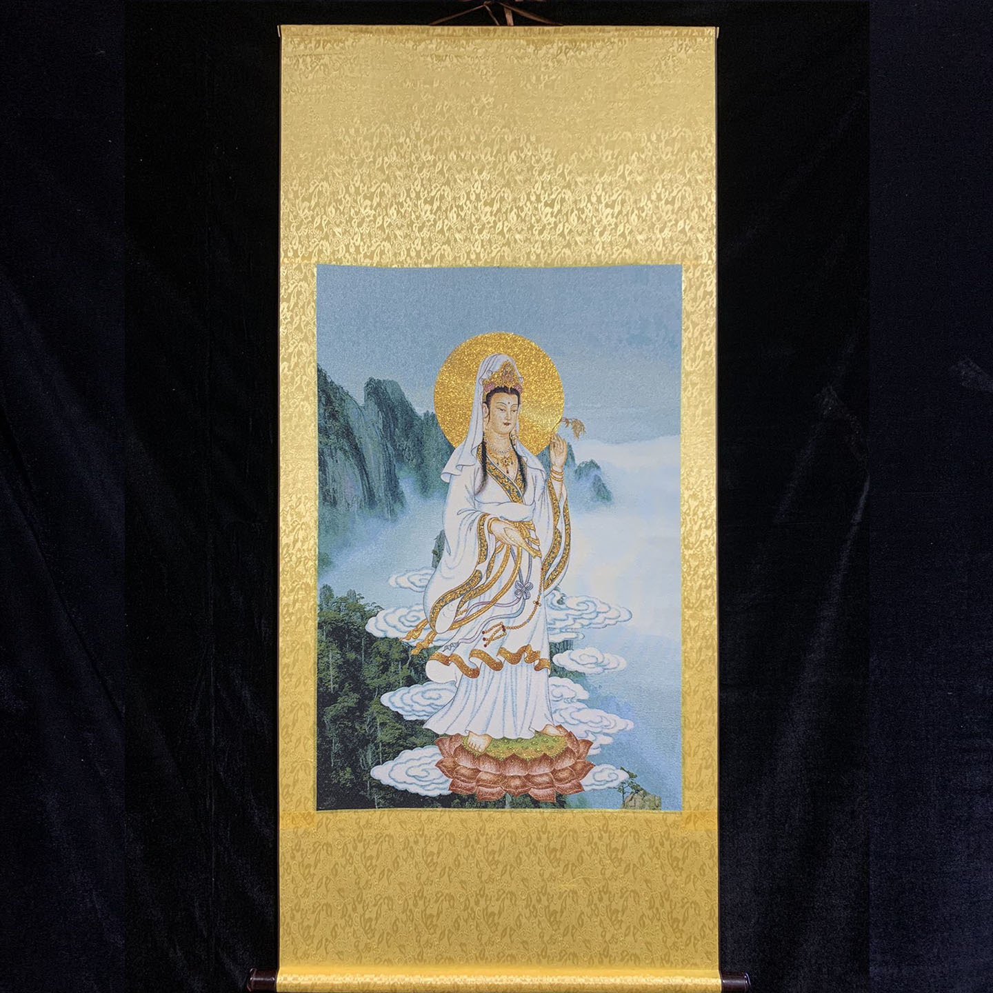 中堂画の卸売りの古遊びの書画の唐カードは錦繍の宗教の絵の観音菩薩を編んで絵を掛けました。