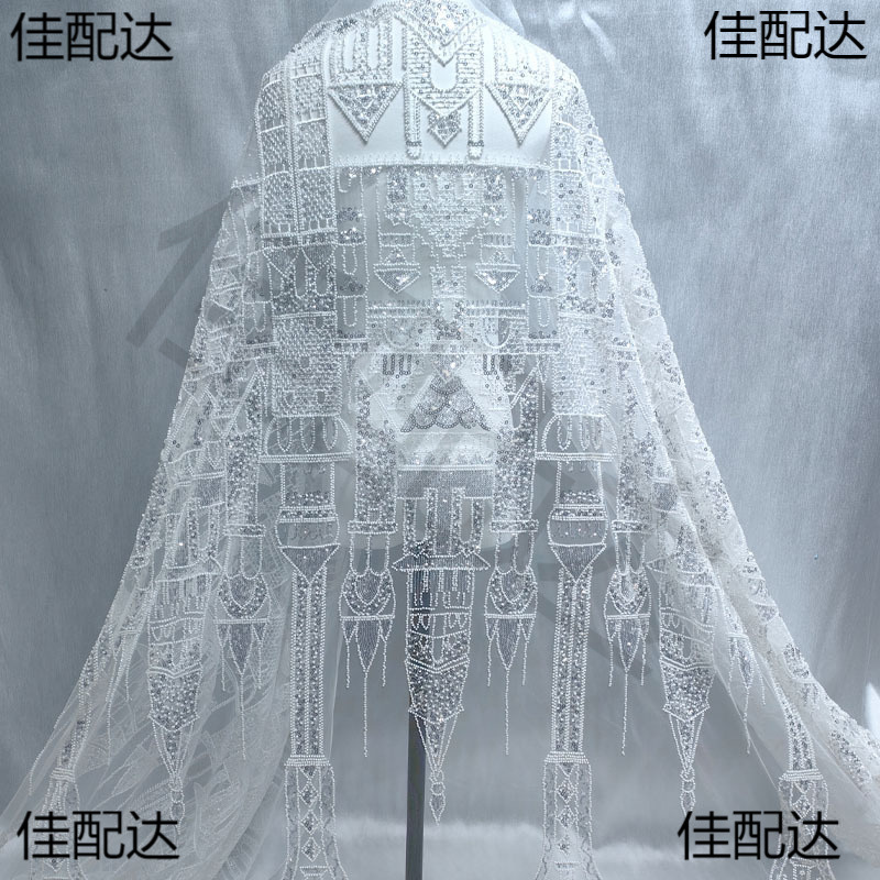 新品スパイク白いスパンコール刺繍立体城レース生地生地ウエディングドレス子供服背景装飾