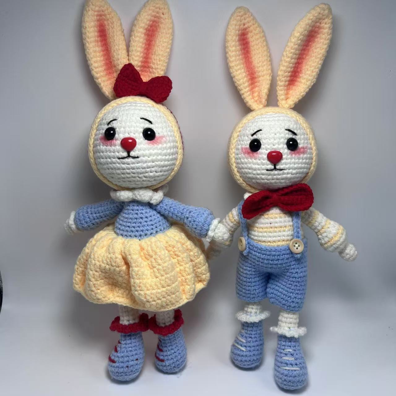 毛糸かぎ針人形手作りカップルウサギかわいいバレンタインデープレゼントネット赤ウサギ完成品