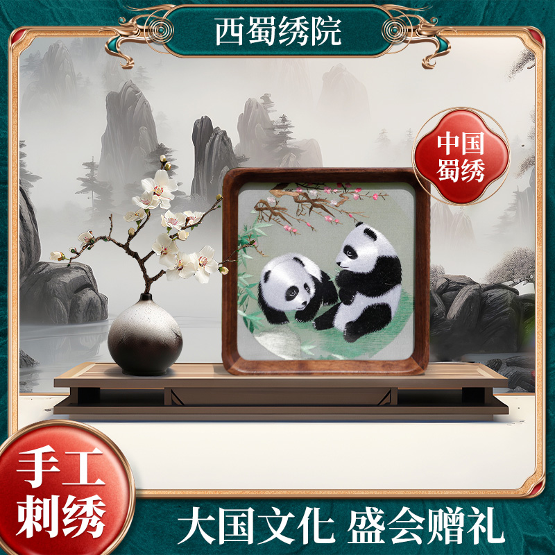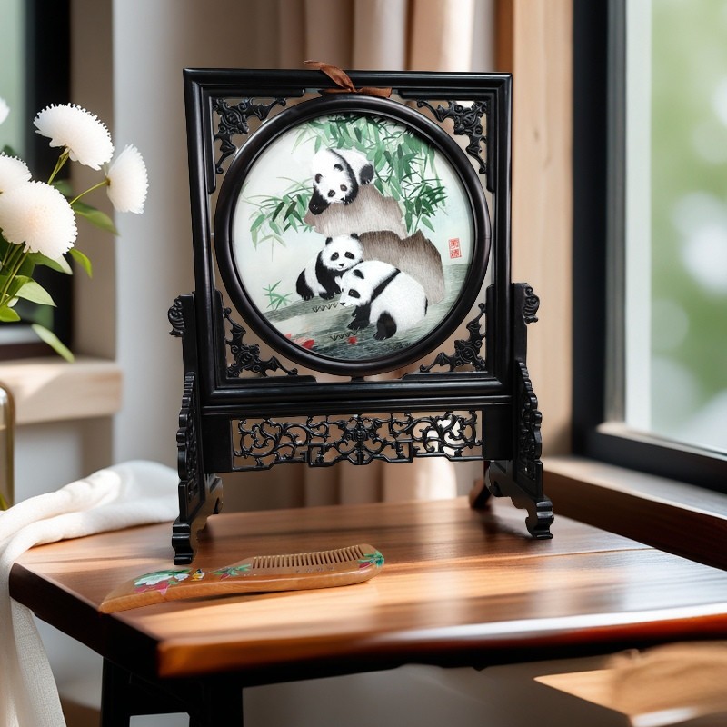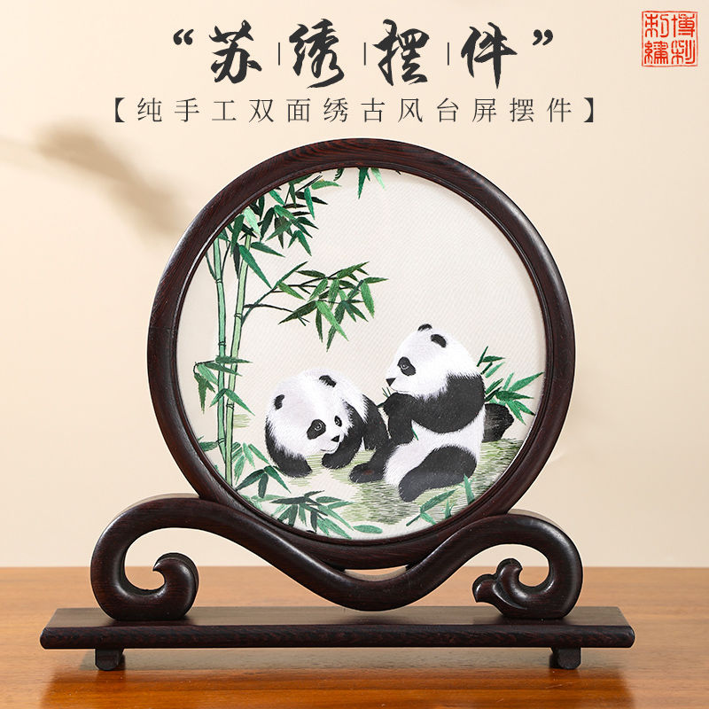 蜀刺繍パンダ記念品屏風工芸品置物中国風特色海外プレゼント先生刺繍プレゼント