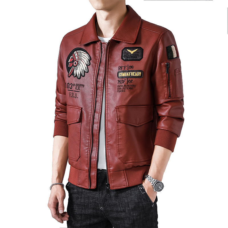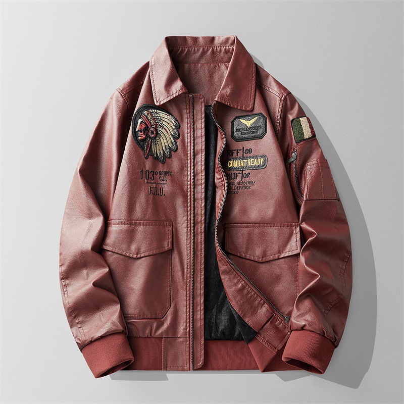 2024新商品の上着とベルベットの秋冬革ジャケットの刺繍インディアンの顔の方襟のレトロなアメリカ機