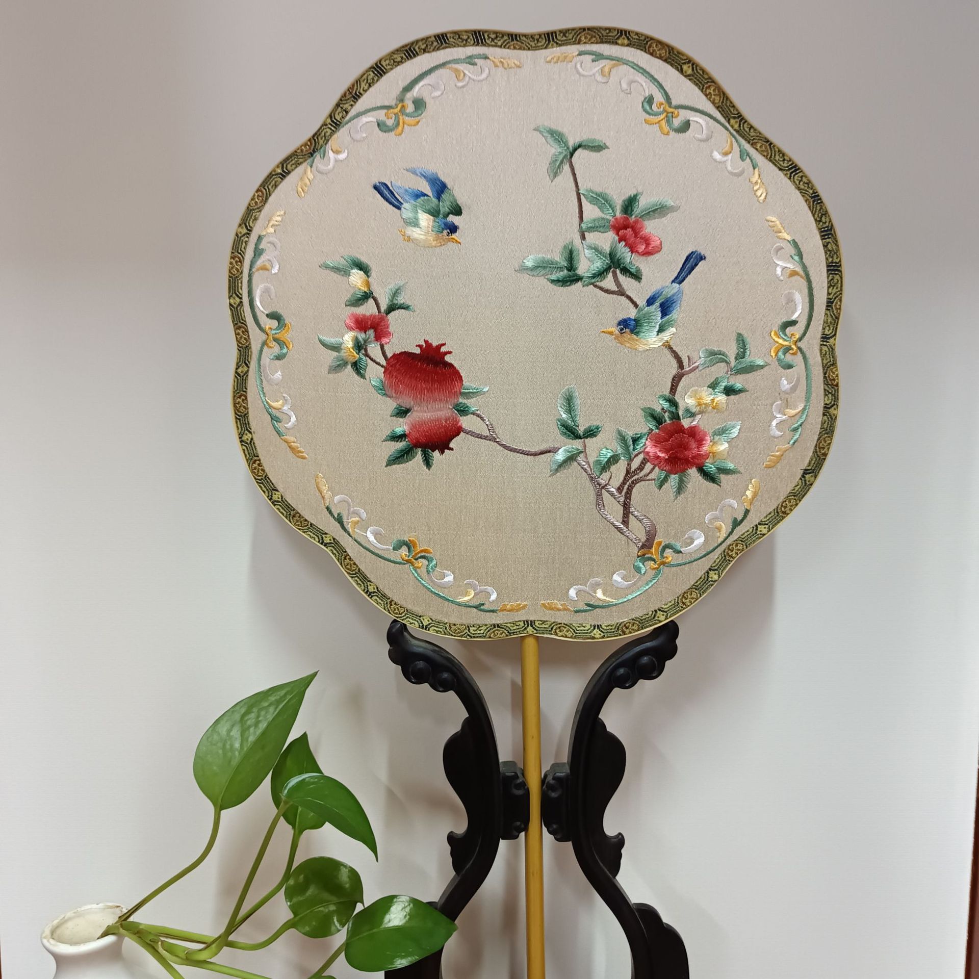 蘇刺繍機刺繍団扇両面異色刺繍扇湘妃竹手作り宮廷刺繍扇子古風漢服結婚式