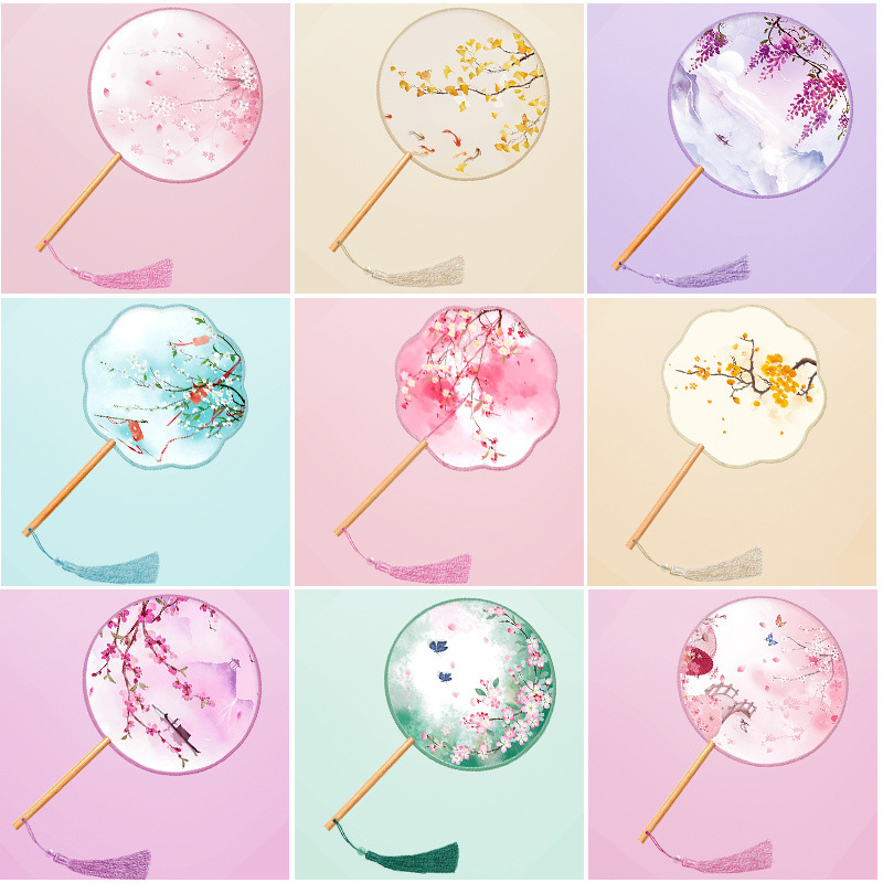 書画団扇風竹枠絵画工画画熟絹真糸宮扇手描き古風まねる団扇