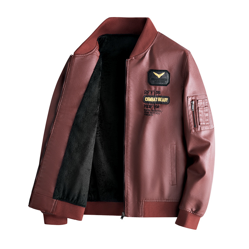 2024新品上着秋冬ベルベット革ジャケット重工刺繍インディアン顔立襟復古アメリカ機