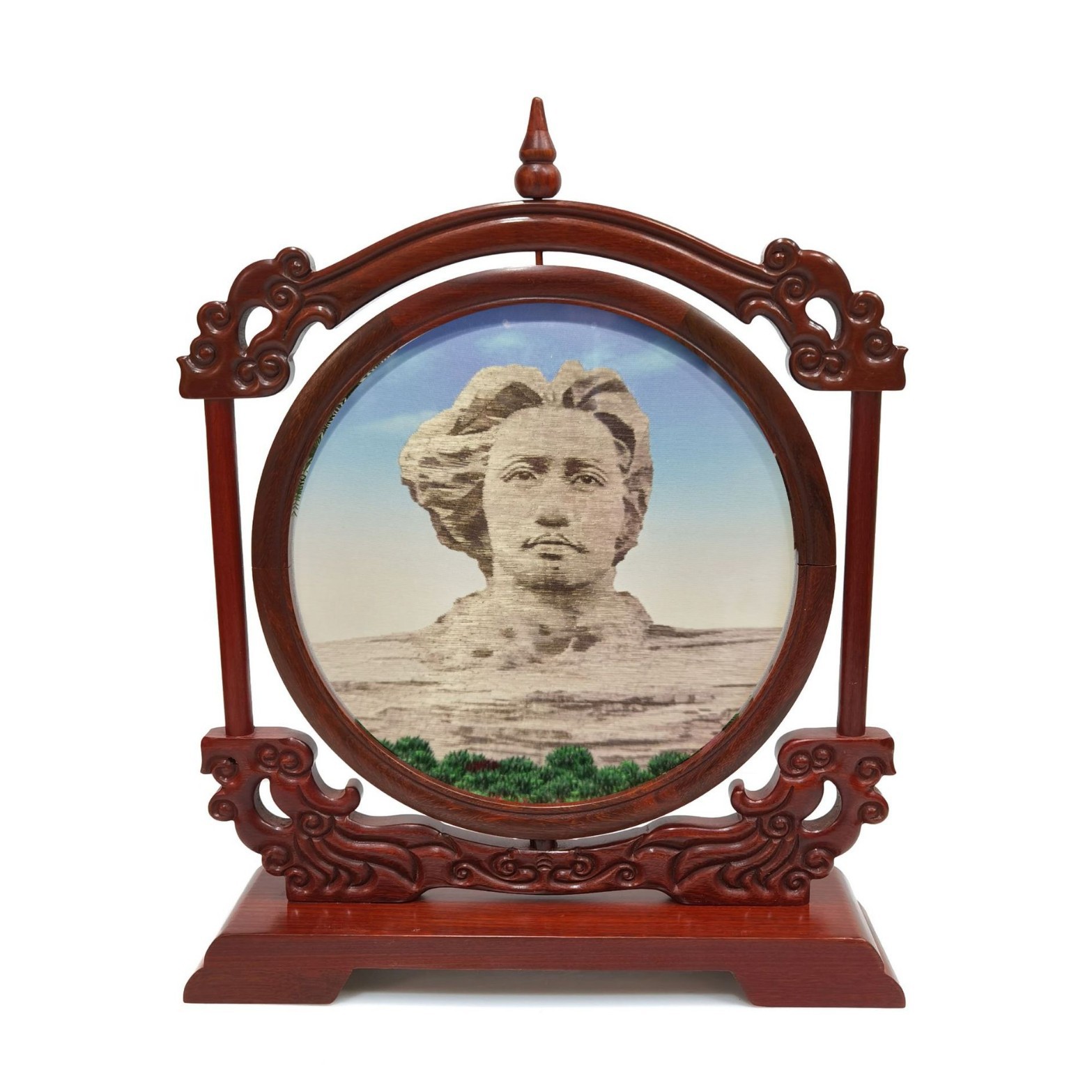 中国風のデスクトップの置物オレンジ州の頭の古典的な中国風の小さい屏風の完成品の手の刺繍の台のついたての贈り物