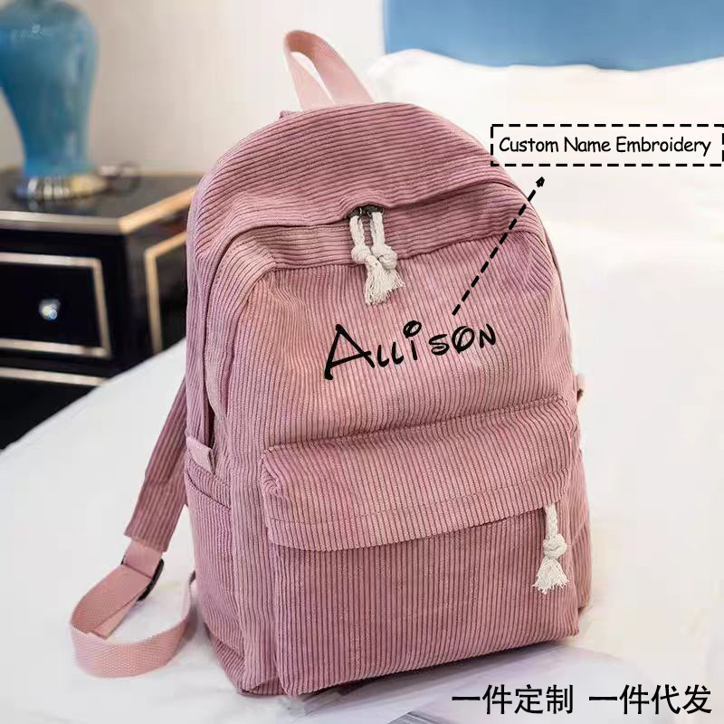 現物クロスボーダー専用ファッションファスナー付きリュックサック女性コーデュロイリュックサック