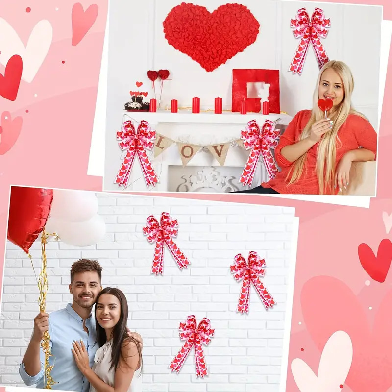 バレンタインデーのリボンのバレンタインデーの蝶結びの愛の花輪のバレンタインデーの花輪の桃の心の壁掛けの祝日は結婚の部屋を手配します。