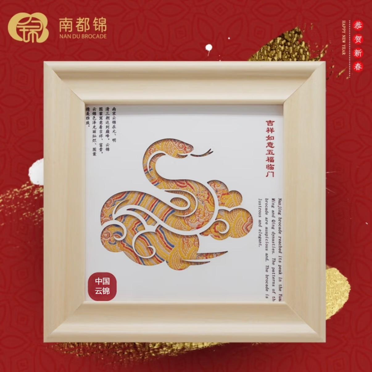 南京雲錦2025年金蛇送福文創特色デスクトップ置物新年蛇年掛画