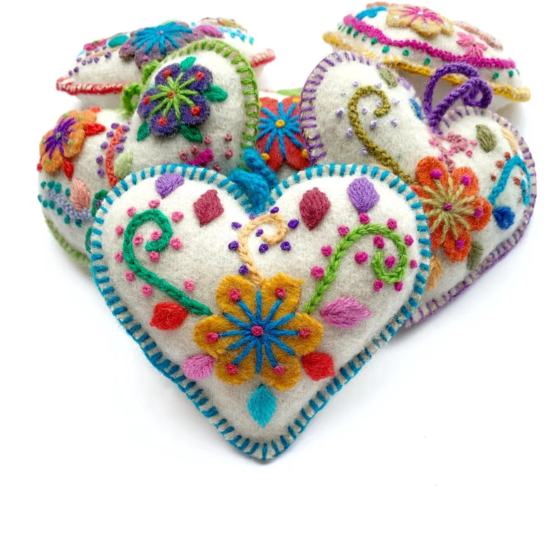 国境を越えた新商品の手作り白色ハート型装飾品、多色刺繍ウールクリスマス装飾品