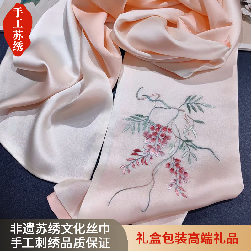 蘇州手刺繍シルクシルクスカーフ绢糸刺繍イブニングドレス長いストール紫藤花お土産