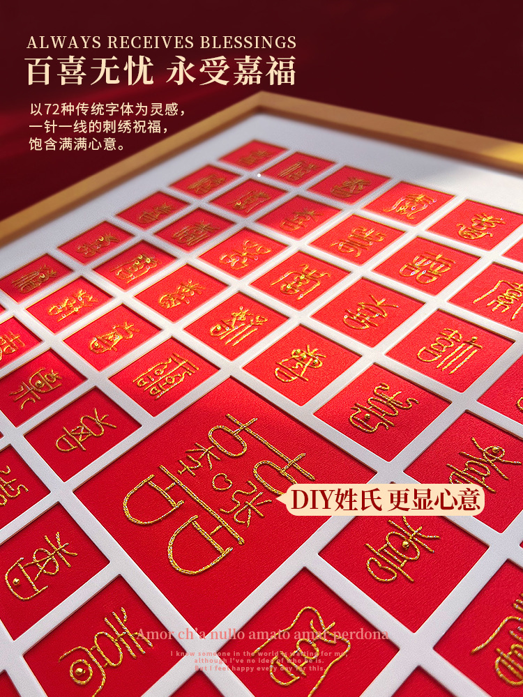 張天琪同金百喜図手作り刺繍diy材料包新婚結婚新婦喜字フォトフレーム絵プレゼント