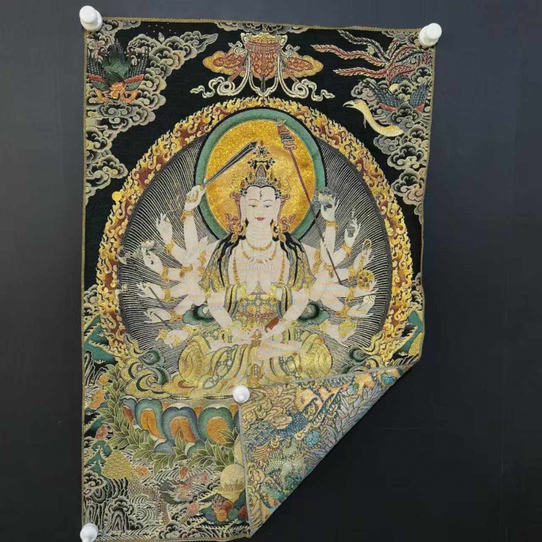 唐カード刺繍四腕観音60x90cm