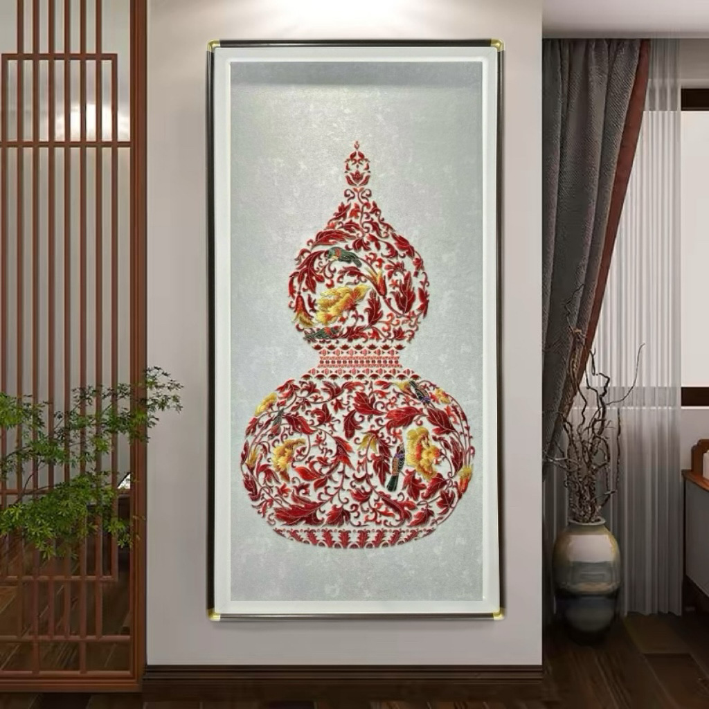 福禄瓢箪織錦繍装飾画入戸門玄関刺繍掛け絵現代シンプル新中国風廊下蘇刺繍