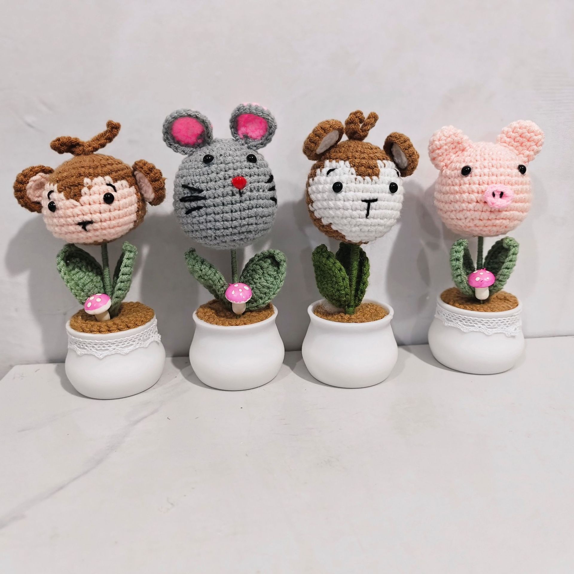 完成品手編み毛糸ネズミ猿小豚頭鉢植え家庭装飾品元旦旧正月プレゼント