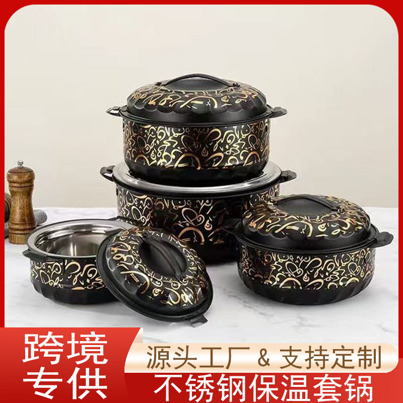 ステンレス保温鍋3/4/5点セット アフリカ向け 蓋付き大容量保温弁当箱 家庭用持ち運び鍋 湯桶