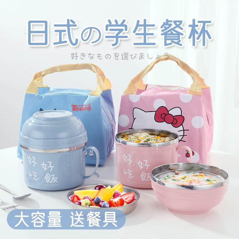 漫画316ステンレス保温弁当箱食品級学生弁当箱ランチボックス電子レンジ日本式保温桶