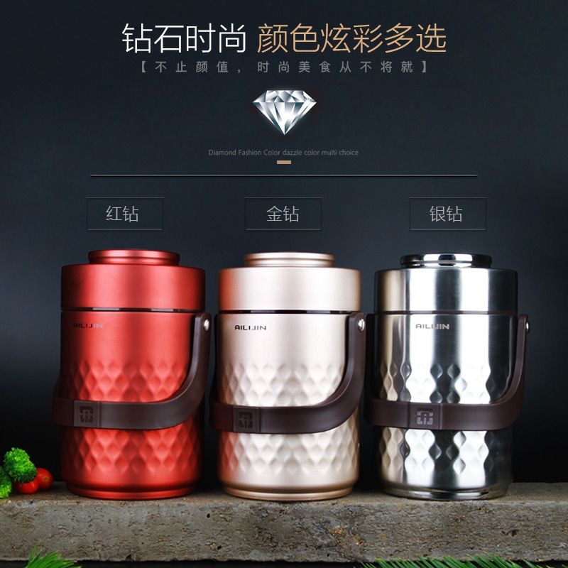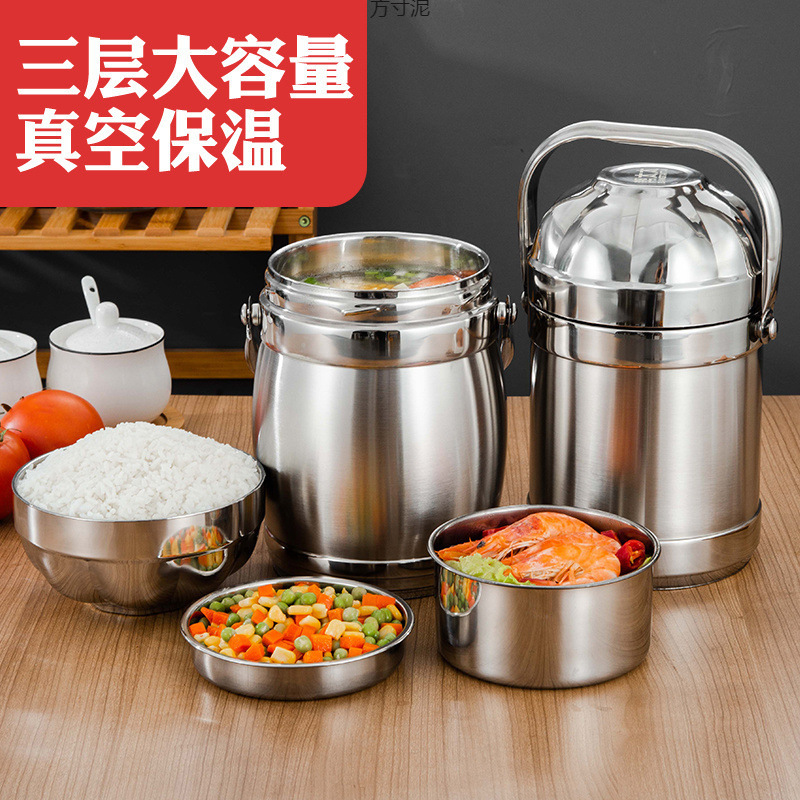 ステンレス家庭用保温鍋弁当箱三層大容量保温真空蒸し焼き弁当箱