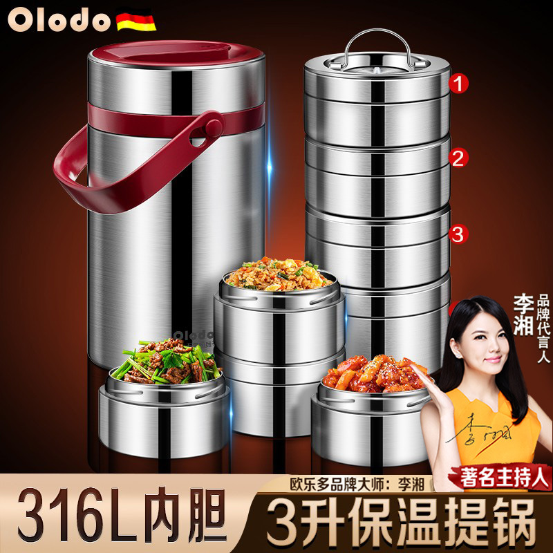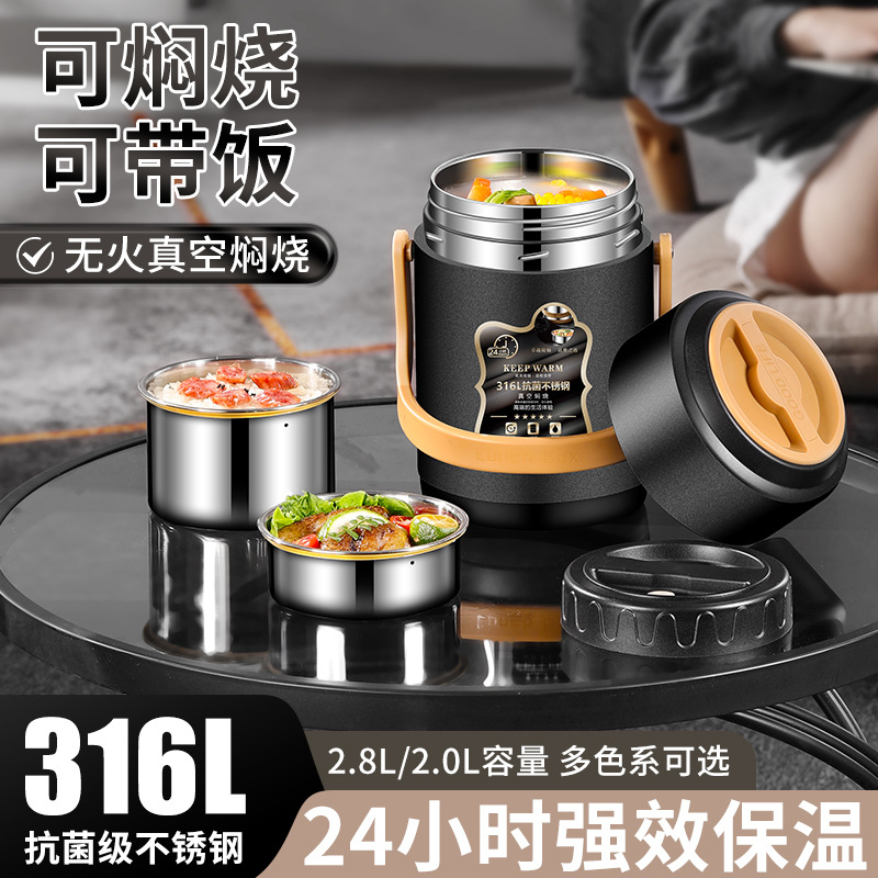 316Lステンレス真空保温桶蒸し焼き鍋抗菌保温弁当箱大容量多層弁当箱