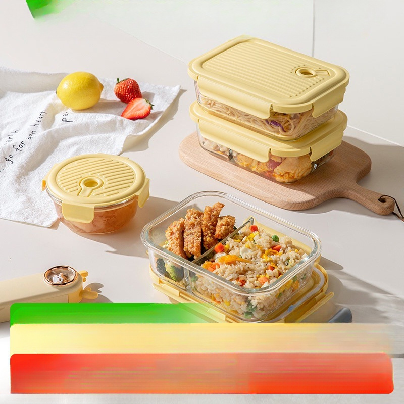 鮮度保持ボックス ガラス弁当箱 電子レンジ加熱ボウル 学生サラリーマン弁当箱 分離野菜箱